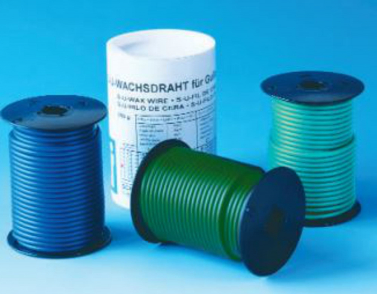 FILO IN CERA - Schuler Dental Malleabile, esente da tensioni, quindi s enza deformazioni degli oggetti di fusio ne. Rotolo da 250 gr COLORE BLU - TIPO DURO Ø 2,0 mm