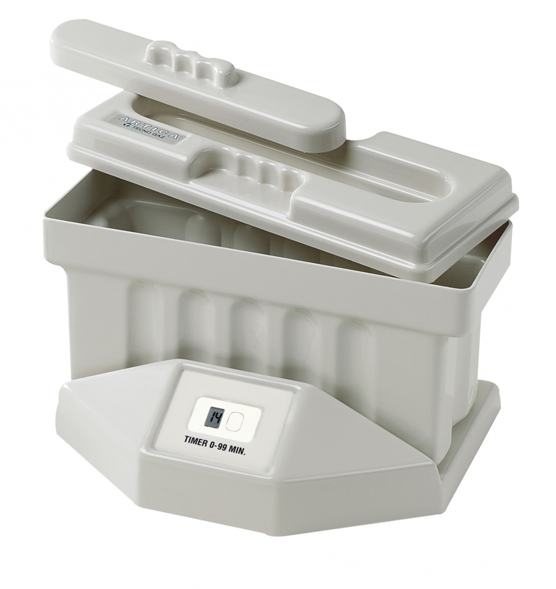 Vasca di decontaminazione. Prodotta in materiale plastico resistente, è completa di apposito supporto con timer integrato per gestire correttamente i tempi di disinfezione: corredata di coperchio totale, per una agevole sostituzione dei liquidi, e di coperchio parziale, per l'inserimento degli strumenti. Completa di cestello interno in plastica, asportabile ed inseribile in apposita vasca ad ultrasuoni, soluzione che, evitando la manipolazione degli strumenti durante il travaso da parte dell'operatore, garantisce la massima sicurezza. VERSIONE PER CARICHI DI MEDIA PORTATA: Portata: 3 Lt. Dimensioni esterne: 325x180x140 mm (LxHxP). Dimensioni vasca interna: 265x52x90 mm (LxHxP). Dimensioni supporto: 295x20x240 mm (LxHxP).
