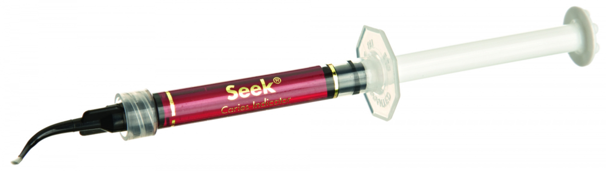 SEEK Rilevatore di carie, caratterizzato da una soluzione a base di glicole e coloranti: particolarmente indicato per un'identificazione rapida della carie in prossimità dei canali endodontici calcificati. Le aree affette assumono una colorazione rossa. Kit: 4 siringhe da 1,2 ml cad. + 20 punte a pennello Black Mini