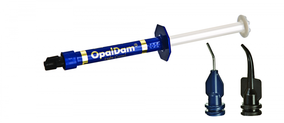 OPALDAM Materiale fotopolimerizzabile ideale per isolare e proteggere i tessuti adiacenti a quelli da sbiancare, a base di metacrilato, idrofilo, sigillante. Si rimuove facilmente. Disponibile in 2 colori: Classico (Bianco Fluorescente) e Green (Verde Fluorescente). Classico Kit: 4 siringhe da 1,2 ml cad. + 10 punte Micro da 20 gr + 10 punte Mini Black
