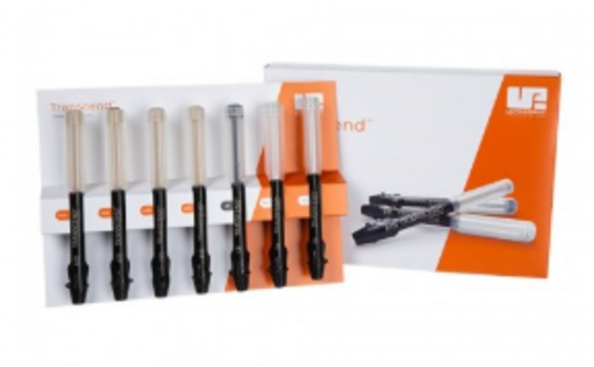 Il composito universale Transcend™ è un composito dentale innovativo per restauri diretti e indiretti sia nella regione anteriore che in quella posteriore. Fornisce una corrispondenza cromatica senza precedenti con una sola massa, Universal Body, inoltre grazie alla tecnologia brevettata Resin Particle Match™ elimina la necessità di utilizzo di un agente bloccante (blocker). Per i casi anteriori che richiedono la tecnica di stratificazione, sono disponibili masse complementari: quattro tonalità per la dentina e due per lo smalto.