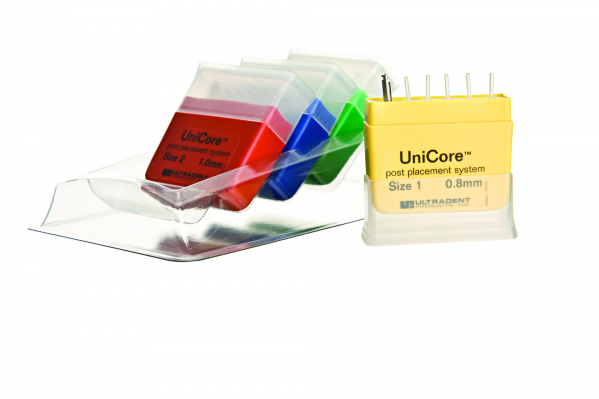 Perni canalari in fibra di vetro con un'elasticità simile alla dentina, ma una resistenza superiore al metallo. Altamente traslucenti e radiopachi, garantiscono la massima resa estetica: il design affusolato della parte apicale e la dimensione più larga nella parte coronale garantiscono la massima resistenza ai carichi masticatori. Corredati di fresa multi-funzionale in acciaio, che può essere utilizzata per la preparazione del canale e la rimozione di perni in fibra, guttaperca e Thermafil. Perni e frese sono codificati in base al colore, per una più facile identificazione, e sono disponibili in 5 misure. Confezionati in pratici kit autoclavabili. System Kit: Kit n. 1 (perno giallo - Ø coronale 1,15 mm/Ø apicale 0,8 mm) + Kit n. 2 (perno rosso - Ø coronale 1,35 mm/Ø apicale 1,0 mm) + Kit n. 3 (perno blu - Ø coronale 1,55 mm/Ø apicale 1,2 mm) + Kit n. 4 (perno verde - Ø coronale 1,75 mm/Ø apicale 1,5 mm), ciascuno con 5 perni + 1 fresa