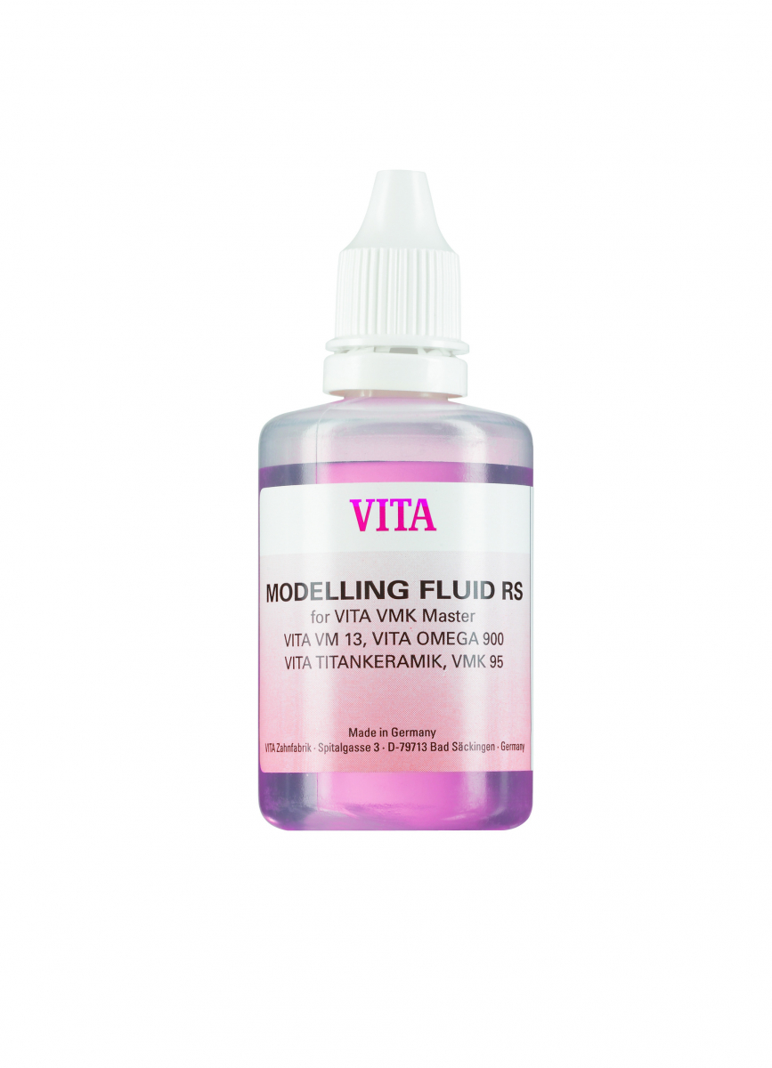 VITA MODELLING FLUID RS, 50 ml Liquido speciale per tempi di modellazione lunghi Per impastare tutte le masse dentine, smalto e aggiuntive. La sua consistenza oleosa consente una modellazione prolungata di masse umide assicurando nel contempo una buona stabilità. Questo liquido è l'ideale per restauri estesi e ponti a pià elementi.