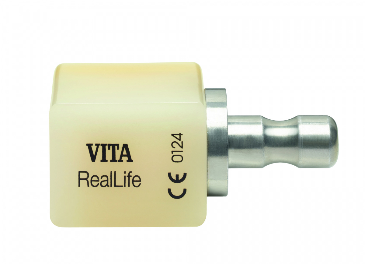 Blocchetti VITABLOCS di 2^ generazione, con andamento cromatico integrato, che consente la riproduzione digitale dei giochi cromatici naturali. La struttura tridimensionale di VITABLOCS RealLife riproduce la naturale curvatura dell'andamento cromatico tra dentina e smalto.