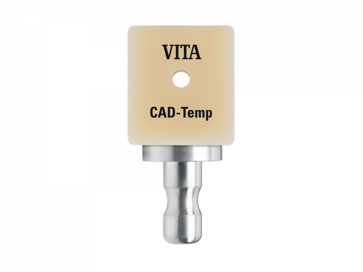 VITA CAD-TEMP IS Blocchetti in poliacrilato reticolato caricato con microparticelle, con un'interfaccia integrata, diametro S e L, per una base di adesione/titanio (per esempio per i Ti-Base Sirona), indicati per la realizzazione CAD/CAM di riabilitazioni dentali supportate da impianti. Confezione da 5 blochetti - Dimensioni: 18x16x18 mm (misura IS-16)