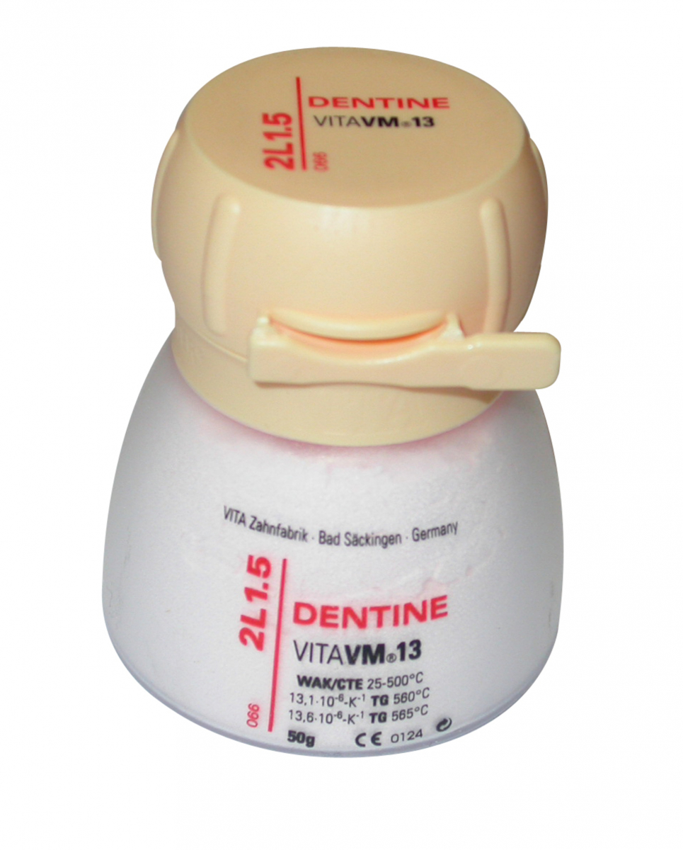 VITA VM 13 Ceramica a struttura microfine sviluppata specificatamente per strutture metalliche in tutte le leghe correnti con un CET di 13,8-15,2. VM 13 DENTINA - Flacone da 50 gr