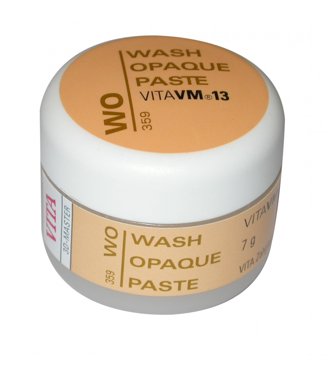 VITA VM 13 Ceramica a struttura microfine sviluppata specificatamente per strutture metalliche in tutte le leghe correnti con un CET di 13,8-15,2. Colorazione 3D Master. VM 13 OPACO IN PASTA WASH - Siringa da 7 gr COLORE WOP