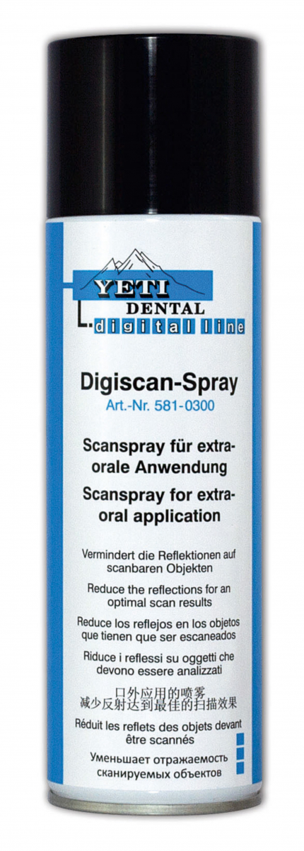Digiscan Spray si può applicare al silicone, gesso o al metallo. Elimina i riflessi sulle superfici, impedendo risultati falsati