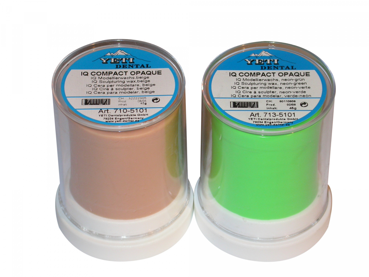CERA IQ COMPACT OPAQUE Cera per modellazione indicata nella tecnica della ceramica integrale, avente le stesse caratteristiche della Cera Ash-Free, ma in versione opaca. Cilindro IQ compact da 45 gr. COLORE BEIGE