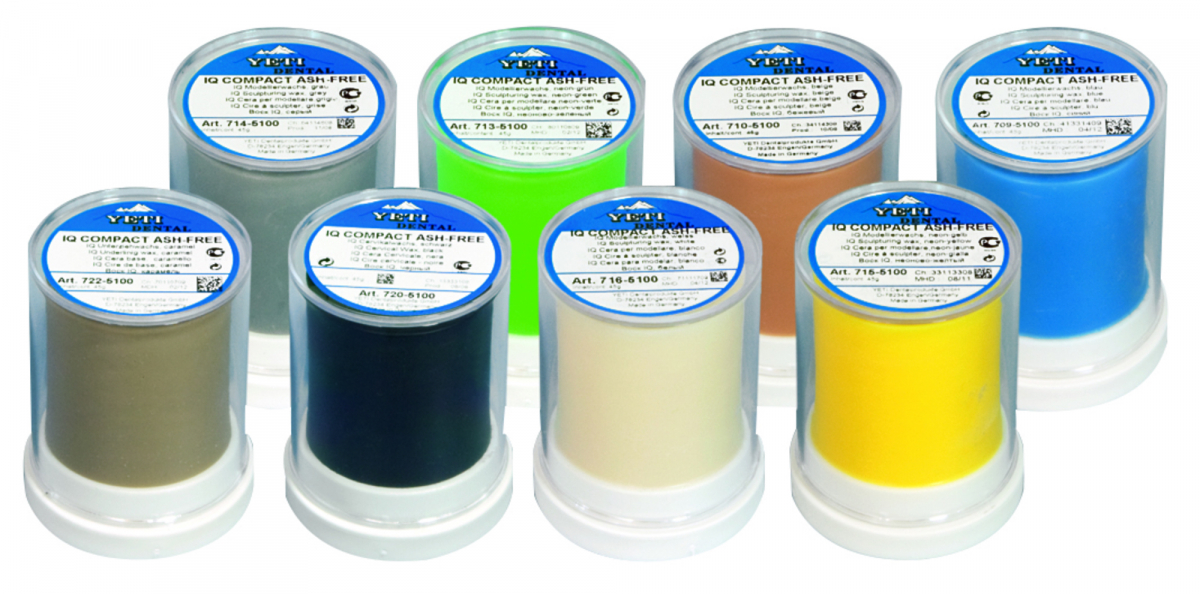 CERA IQ ASH-FREE Cera per modellazione indicata nella tecnica della ceramica integrale. Caratterizzata da un'alta solidità interiore, una grande rigidità e resistenza alla rottura; eccezionale per la sua stabilità, facile da scavare, semplifica notevolmente la modellazione. Priva di materiali sintetici, è esente da retrazioni. Cilindro IQ compact da 45 gr. COLORE NEON-VERDE
