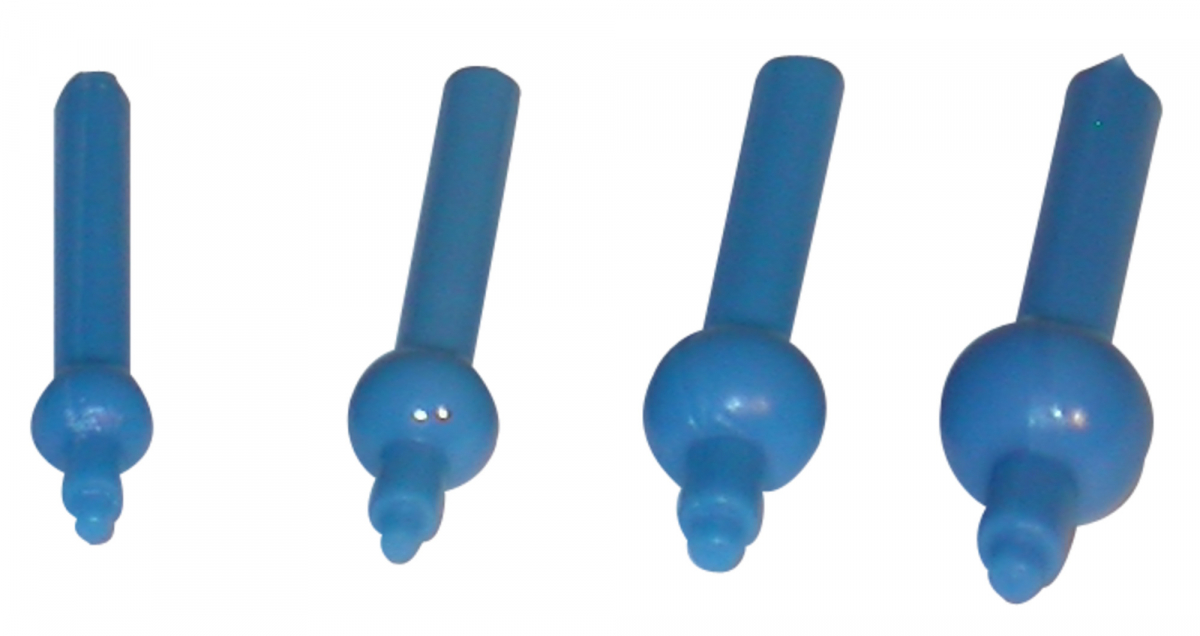 PERNI IN CERA PER FUSIONI Perni rigidi in cera preformati, con pallina di riserva (nourice); quest'ultima posizionata nel centro termico del cilindro "alimenta" la fusione nella richiesta di metallo durante la fase di raffreddamento. Confezione: 250 pezzi COLORE BLU - Ø nourice 4 mm