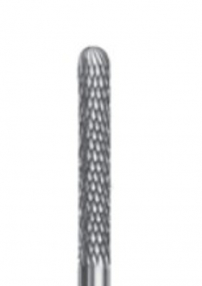 Fresone in carburo di tungsteno con punta cilindrica arrotondata lunga e taglio FX incrociato fine per manipolo dritto.