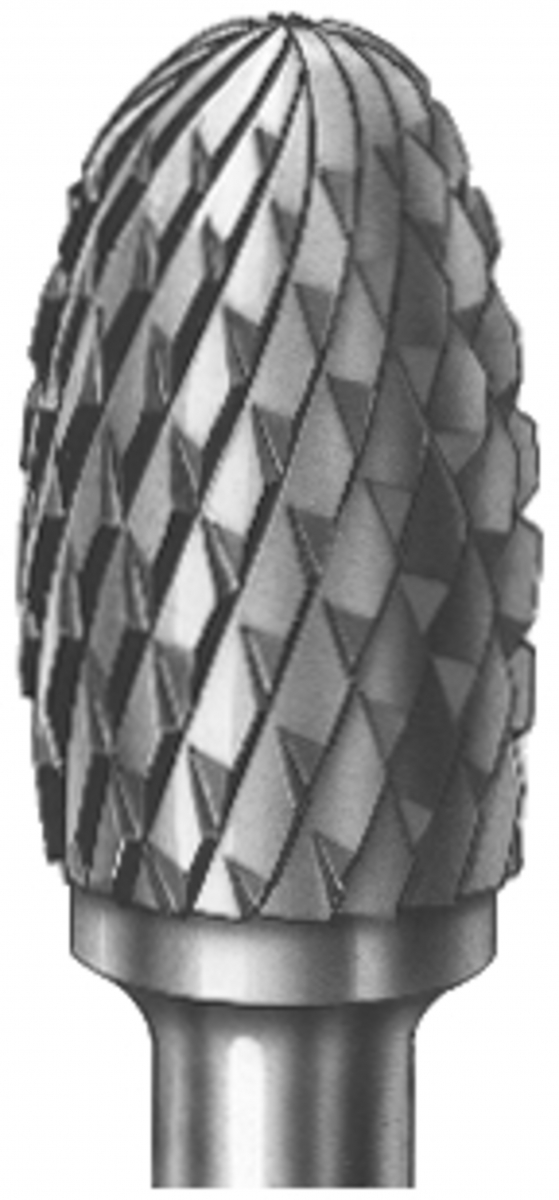 Fresone in carburo di tungsteno con punta a granata e taglio MX incrociato medio per manipolo dritto.