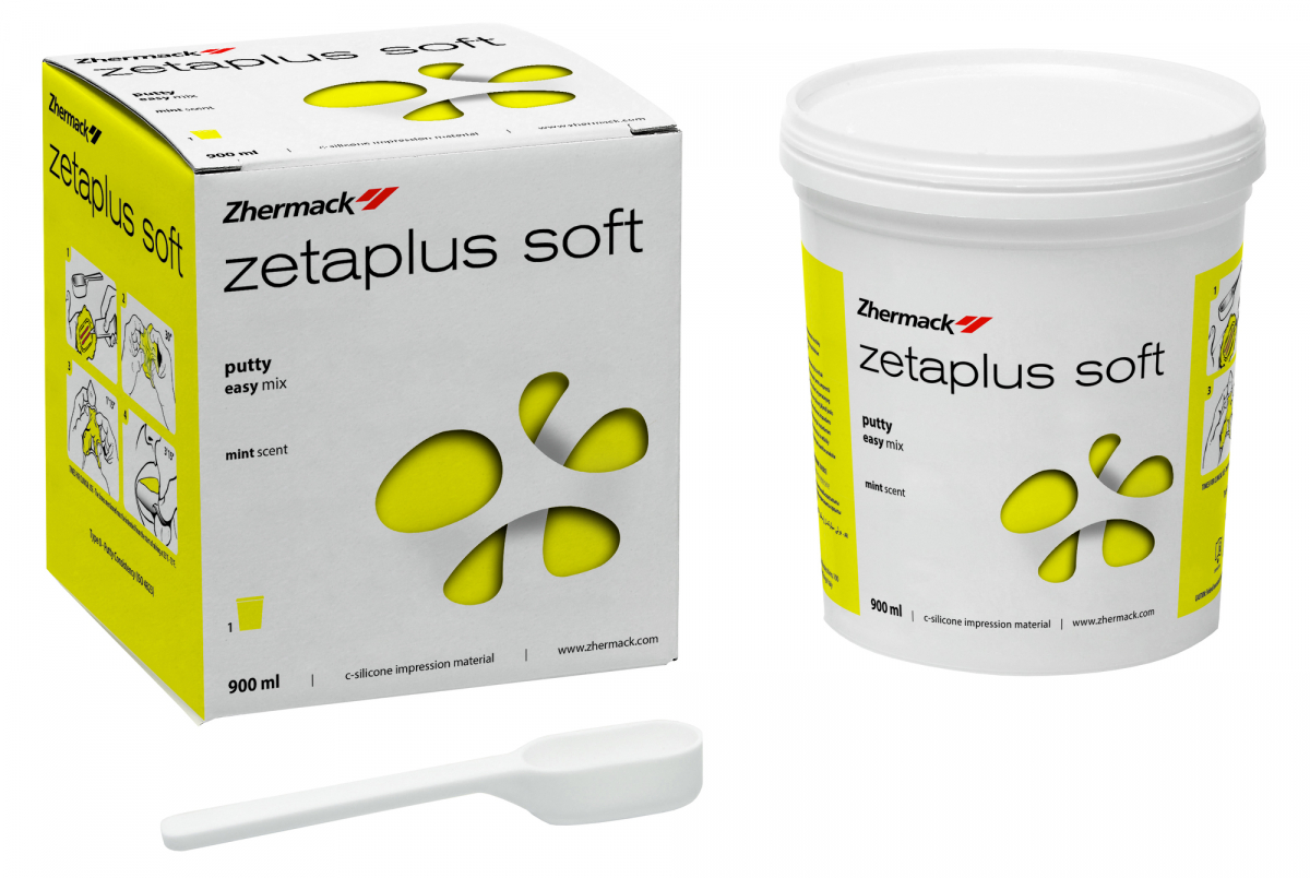 ZETAPLUS Silicone tipo C (1ª impronta) di facile lavorazione ed eccezionale rigidità finale, indicato per la tecnica della doppia miscelazione e della doppia impronta. ridotta compressione delle mucose in fase di inserimento nel cavo orale , elevata elasticita', Barattolo da 900 ml - colore giallo Versione Putty Soft