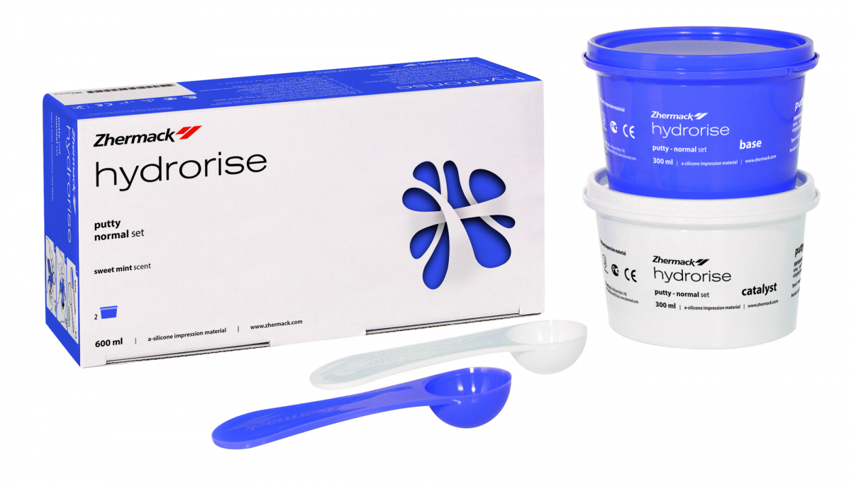 Silicone di tipo A che si adatta a qualsiasi tecnica d'impronta anche in situazioni cliniche complesse. Alcune delle caratteristiche principali a seguire. Iperidrofilia: la tecnologia esclusiva sviluppata dalla ricerca Zhermack rende Hydrorise estremamente affine all'acqua; angolo di contatto inferiore a 10°:minore è l'angolo di contatto, maggiore è la bagnabilità del materiale, permettendo al silicone di adattarsialle diverse morfologie dental; Sistema AMDA (Advanced Moisture Displacement Action): favorisce una precisa riproduzione dei dettagli nell'ambiente umido della bocca, preservando l'integrità dei margini dell'impronta. Confezione: 1 barattolo di base da 300 ml + 1 barattolo di catalizzatore da 300ml