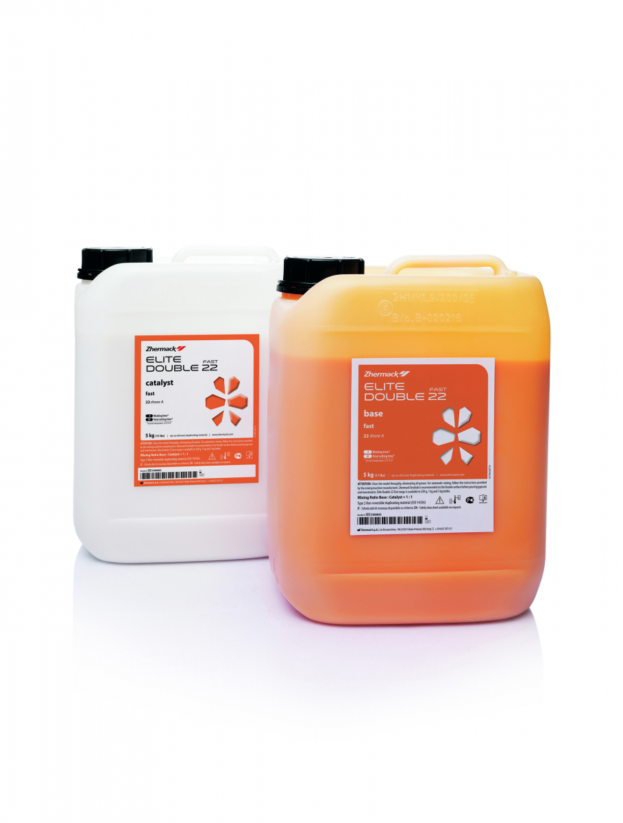 I siliconi sono caratterizzati da differenti colori, quattro durezze finali diverse e tre tempi di presa: normal, fast ed extra fast, quest'ultimo formulato appositamente per i miscelatori automatici. Elite Double mantiene un'elevata e costante fluidità durante il tempo di lavorazione, restituendo un risultato omogeneo e privo di bolle.
