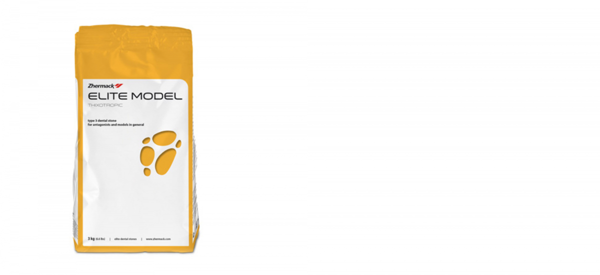 Elite Model è un gesso di tipo 3 di qualità superiore indicato per realizzare antagonisti e per il riempimento di muffole in protesi rimovibili con resine termopolimerizzabili.
