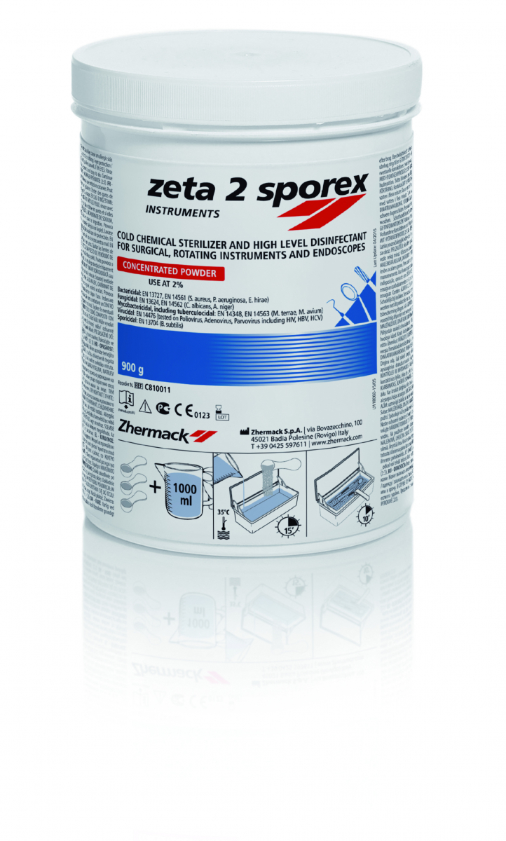 Disinfettante e sterilizzante concentrato in polvere, a base di acido peracetico, a spettro d'azione completo, per strumentario chirurgico ed endoscopico. Indicato per la sterilizzazione chimica a freddo, in particolare per tutti quei dispositivi che non possono essere sterilizzati in autoclave. Svolge un'efficace azione battericida, fungicida, micobattericida, tubercolicida e virucida (inclusi HIV, HBV, HCV, Poliovirus, Adenovirus, Parvovirus). Diluizione: 2%. Barattolo da 900 gr