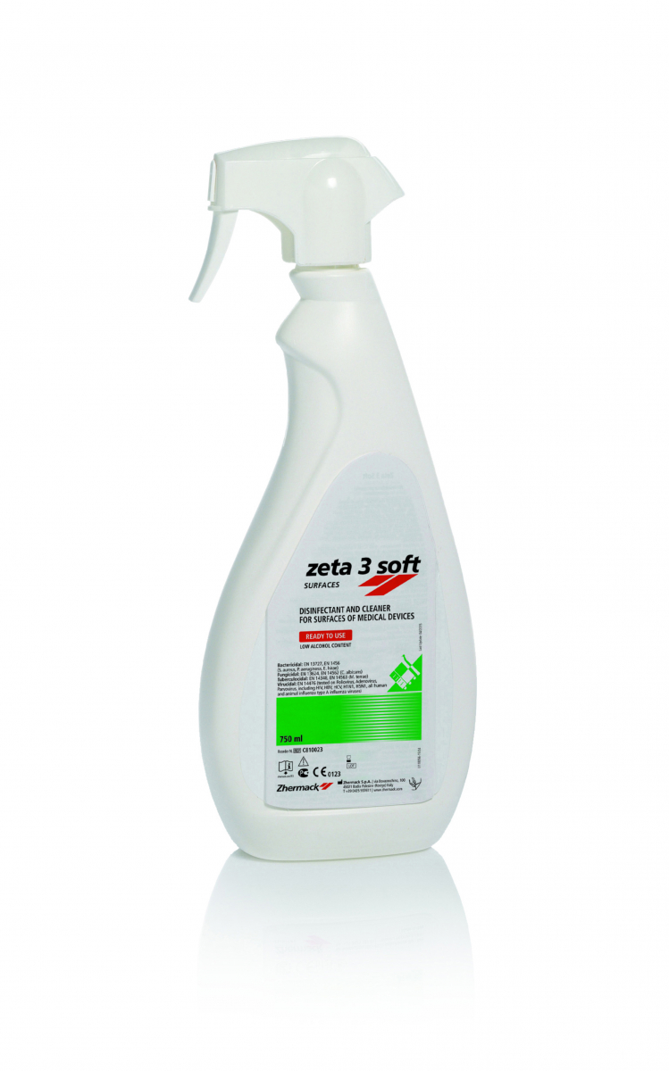 Disinfettante pronto all'uso (già Z3), a base di etanolo e isopropanolo, senza sali d'ammonio quaternari e con una bassa percentuale di isopropanolo, ad ampio spettro d'azione, per la disinfezione rapida di superfici e dispositivi medici. Svolge un'efficace azione battericida, fungicida, tubercolicida e virucida (inclusi HIV, HBV, HCV, Poliovirus, Adenovirus, Parvovirus). La sua formulazione lo rende poco aggressivo per le vie aeree. Flacone da 750 ml con nebulizzatore. Profumazione Lemon